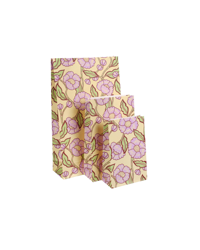Deze blokzak in maat M met paarse bloemen is een stijlvolle en praktische manier om jouw cadeaus te verpakken. De zachte bloemenprint geeft een lieve en verzorgde uitstraling, waardoor elk cadeau extra speciaal aanvoelt.