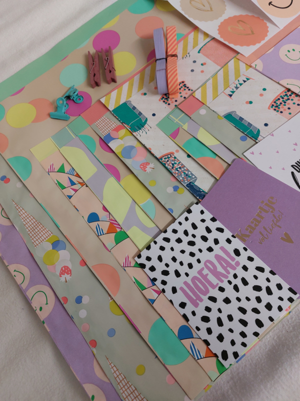 Deze cadeau inpakset is ideaal als je meerdere cadeautjes wilt inpakken of altijd een vrolijke cadeauverpakking op voorraad wilt hebben.