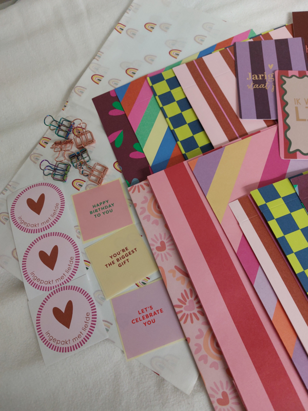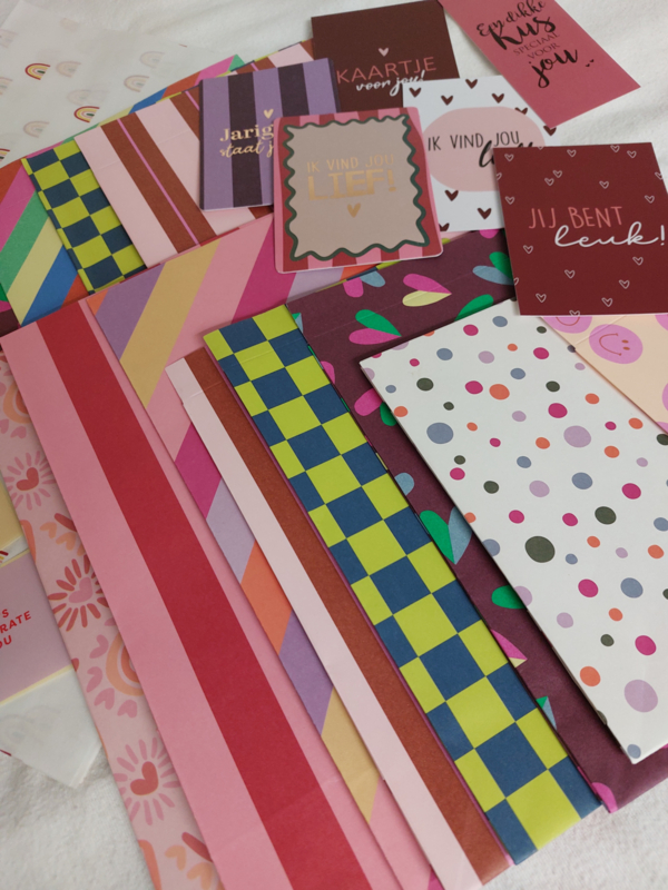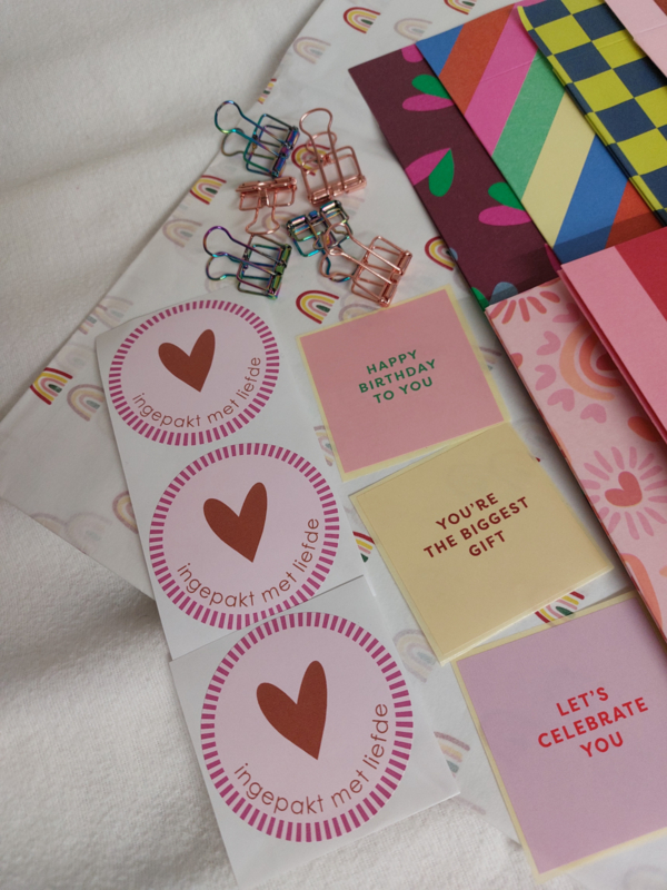 Dankzij het gebruik van vloeipapier, stickers en kaarten geef je jouw cadeau eenvoudig een verzorgde en feestelijke uitstraling. Ideaal voor verjaardagen, bedankjes of andere speciale momenten.